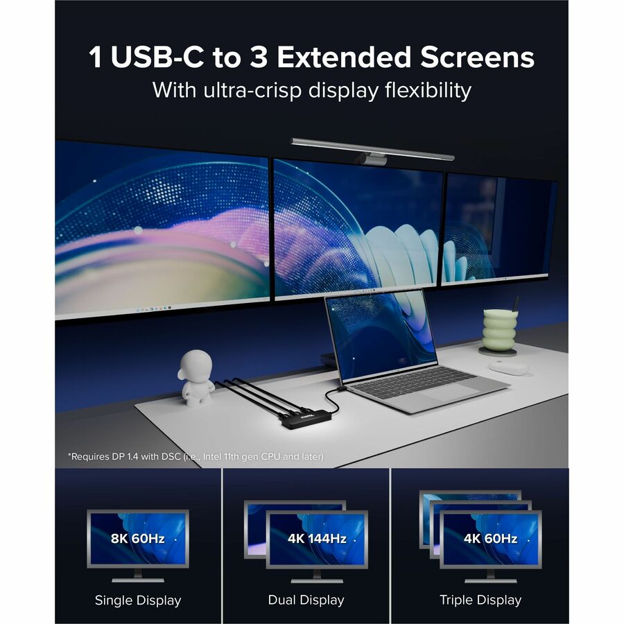 Leveraging DisplayPort 2.1 Alt Mode, HDR, and HDCP support, the USBC-MSTH3 delivers impressive resolution options-enjoy a single 8K 60Hz monitor, dual 4K 144Hz, or triple 4K 60Hz extended displays. Few adapters on the market offer such advanced display support.