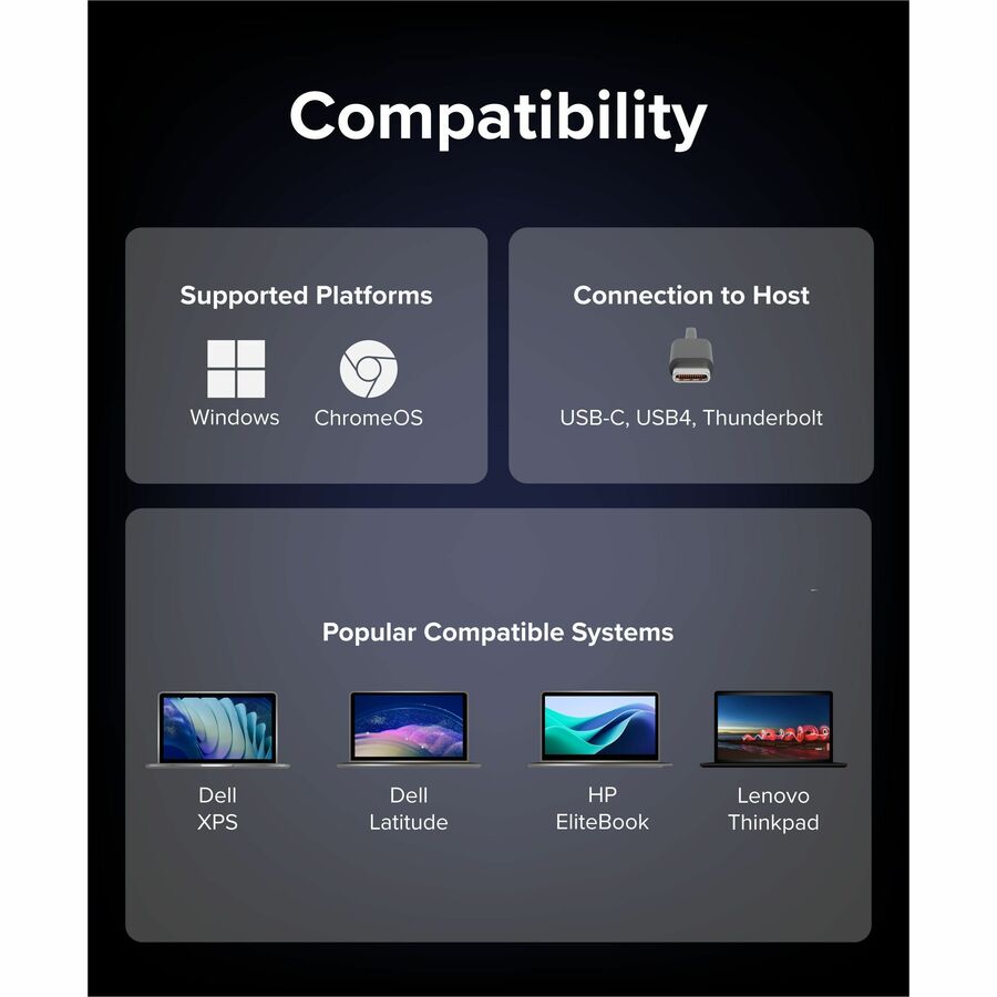 - Compatibility: For max resolution, a DP 1.4 host with DSC support is required (Intel 11th Gen CPU or later). Works with Windows 10 or later, and ChromeOS 100+ systems with video-capable USB Type C, USB4, or Thunderbolt. Not recommended for Mac systems