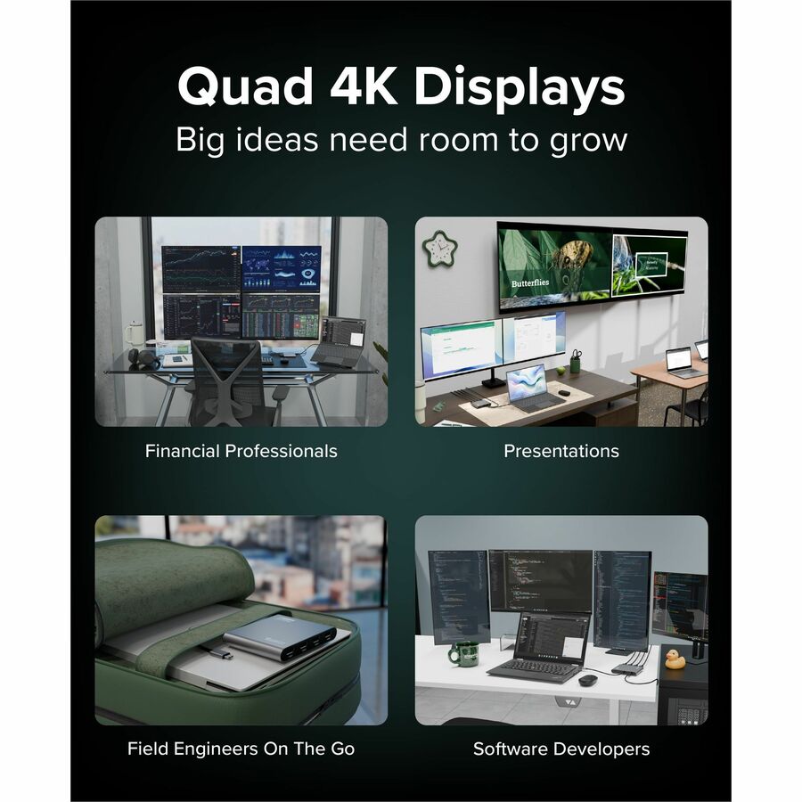 - 4 Screens in 4K: Let your productivity prosper with 4x 4K 60Hz HDMI displays from a single USB-C port. Perfect for dedicating screens to tasks, this adapter supports high-resolution multitasking, so it's ideal for office environments, stock traders, and data analysts