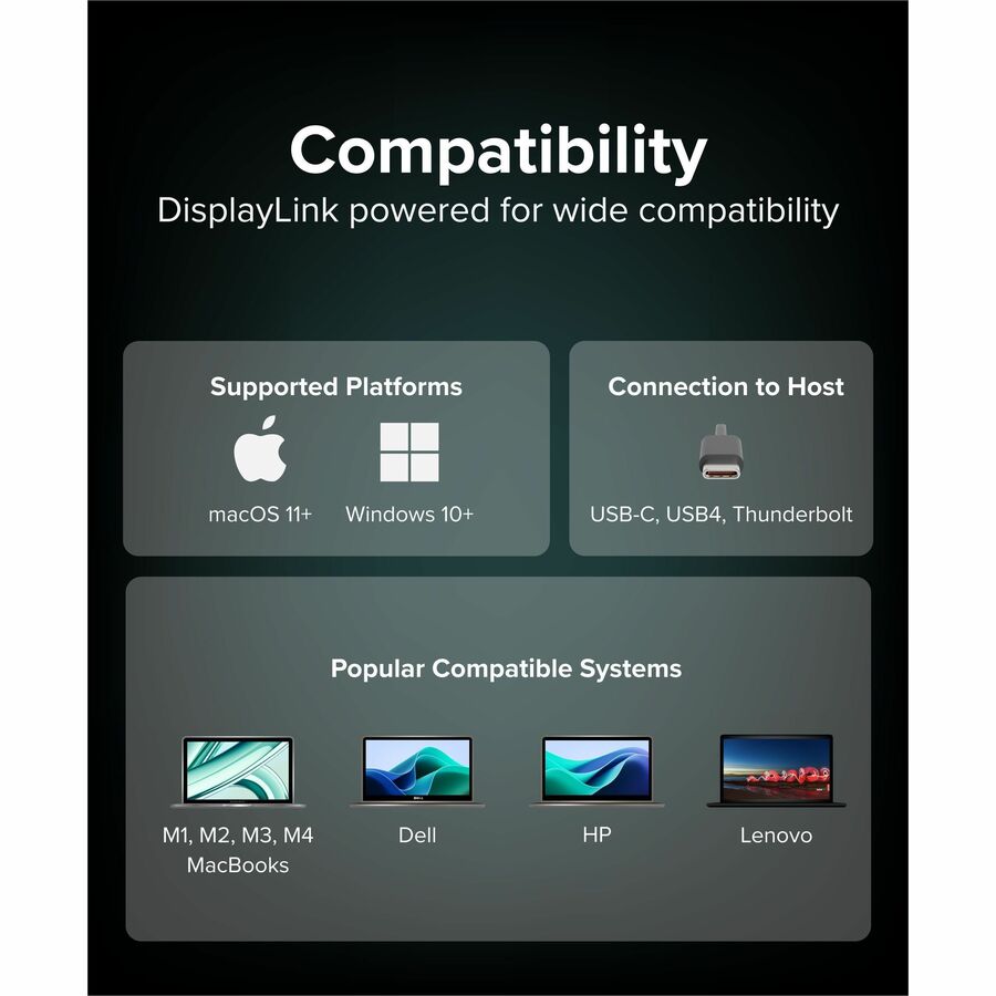 - Compatibility: Powered by DisplayLink technology (driver download required), the USBC-7400H4 works with Windows and macOS, even base model M1, M2, M3, and M4 MacBooks can extend to 4x independent displays (5 counting the laptop screen). Does not support HDCP and is not recommended for gaming