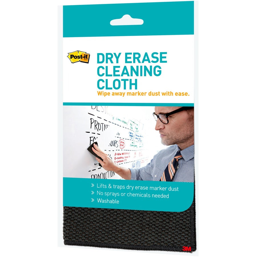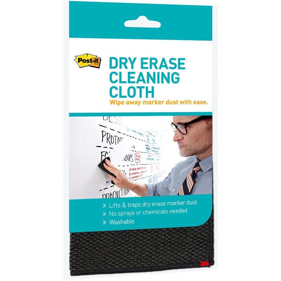 Easily wipe away marker dust using the Post-it Dry Erase Cleaning Cloth. It is great for everyday erasing of dry-erase marks. This cloth lifts and traps marker dust to clean surfaces without the use of sprays or chemicals. Reuse the cloth again and again. Cloth is machine-washable more than 100 times.