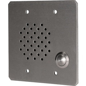 The CIS4 Series is a 2-gang, vandal resistant call-in station with integrated speaker/microphone consisting of a 2.5" square frame loudspeaker with a 2.35 oz. ceramic magnet and a phenolic impregnated, moisture resistant cone - a 1W-25V transformer, and a momentary (normally open) push-to-call button.