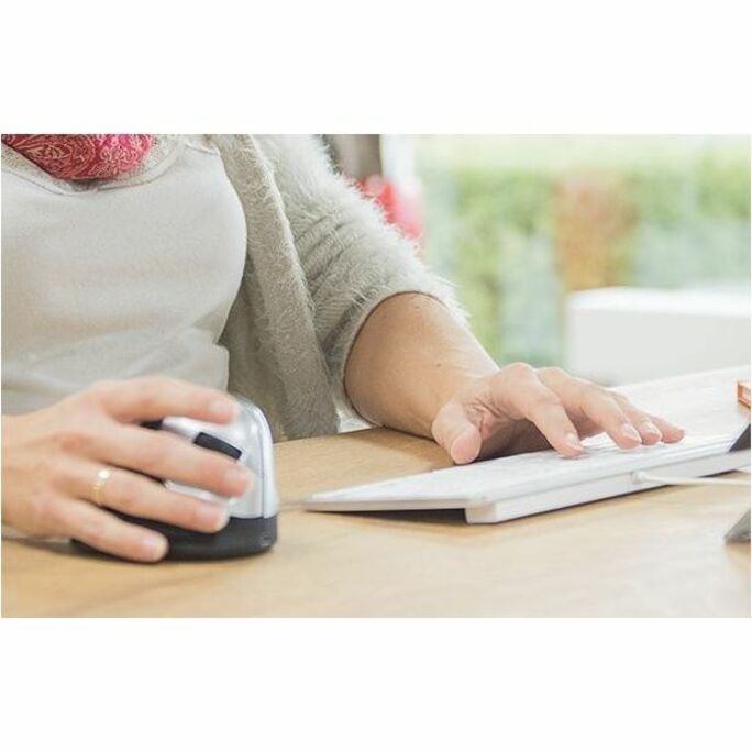 The R-Go Compact keyboard is a very compact ergonomic keyboard. When using keyboard and mouse simultaneously, your hands always remain within shoulder width. This ensures that your shoulders and elbows are a natural, relaxed position and prevents strain complaints such as CANS. Due to the light keystroke, there is minimal muscle tension during typing. The keyboard is flat, keeping your hands and wrists flat and relaxed while typing.