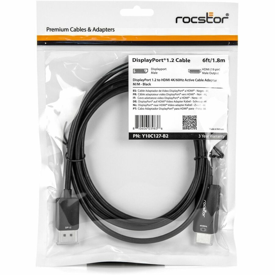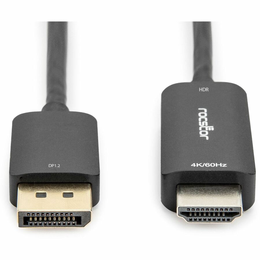 Rocstor Premium 6ft (1.8m) DisplayPort® 1.2 to HDMI® Active Cable Adapter Converter is a high-quality cable designed to connect devices with DisplayPort output to HDMI display devices such as projector, monitor or television. It supports high-quality video and audio, with an Ultra-High Definition (UHD) video resolution of up to 3840 x 2160 (4K x 2K) at 60Hz on large display monitors, without breaking the pixel quality. Additionally, if your DisplayPort card supports audio passthrough, this cable provides the finest full audio, allowing you to enjoy an immersive multimedia experience. The cable is also HDCP (High-Definition Content Protection) compliant, which is important for protecting copyrighted content.