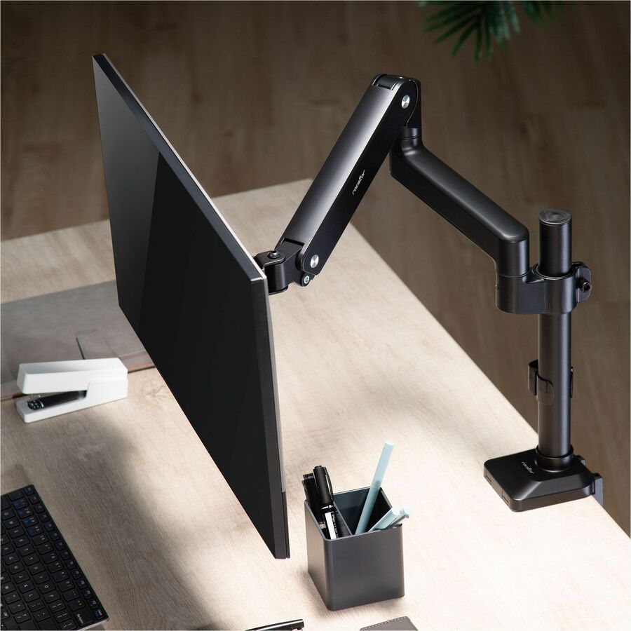 Rocstor ErgoReach EP8 Premium Single Ergonomic Monitor Pole Mounted Arm is your ultimate gateway to a more efficient, stylish, and an organized workspace. Designed to accommodate monitors up to 34 inches, with a substantial weight capacity of 22lbs per screen, this monitor arm delivers form and function in most comfortable and productive way. The Rocstor ErgoReach EP8 boasts a high-quality spring-assisted mechanism that offers smooth and stable tilting up to ±70° Range and swiveling up to ±90° Range. You have precise fingertip control over your monitor's positioning, allowing you to achieve the perfect view and posture.