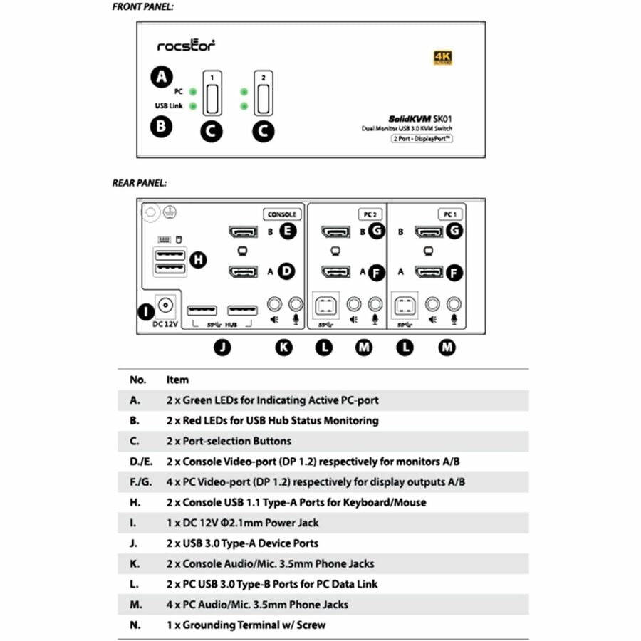 The SolidKVM SK01 is a cutting-edge 2-port Dual Monitor DP 1.2 USB KVM switch that incorporates audio and microphone switching capabilities. With the latest True Transparent USB (TTU) Emulation Technology, it o?ers seamless compatibility with advanced keyboards and mice, including those designed for Windows 10 and Mac OS X. This versatile KVM switch allows you to control, boot, and reboot two computers effciently, using only a single set of peripherals, comprising a keyboard, mouse, dual monitors, and a set of microphones and speakers/headphones.