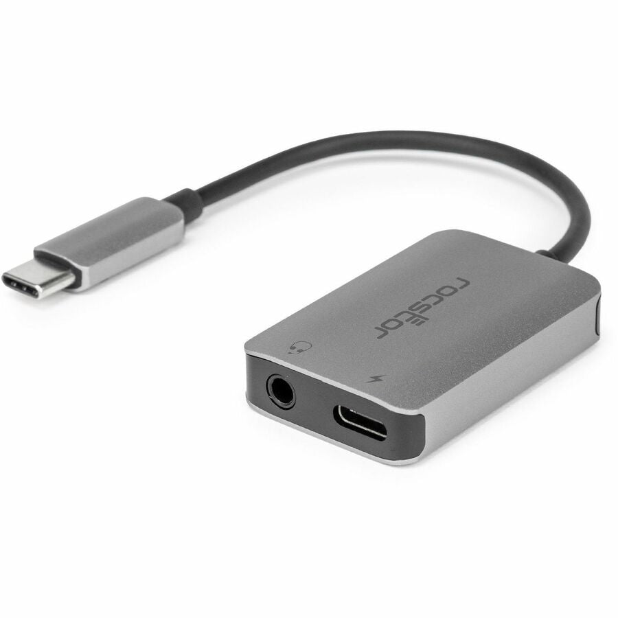Rocstor Premium USB-C to Hi-Res AUX 3.5mm Audio with 100W Power Delivery (PD) Adapter is designed to provide high-resolution audio and efficient charging capabilities. This adapter seamlessly connects Type-C enabled PCs, laptops, or smartphones with 3.5mm audio peripherals such as headphones, headsets, speakers, or microphones. Enjoy immersive audio playback or recording while keeping your device powered. The USB-C female port not only charges the host device but also powers the adapter simultaneously, ensuring continuous operation without interruptions.
