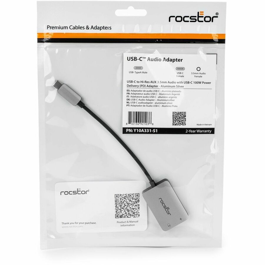 - Additional Features: Audio jack auto-switch detection , No phone call support on Samsung S8, Note 9, Blackberry Keyone , Charging takes precedence over audio on Type-C phones without PD , Audio may pause when plugging in power on devices without data role swap , Warranty: Rocstor 2-Year Limited Warranty