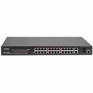 Rocstor SolidConnect SCM28 24-Port PoE+ Gigabit Managed Switch with 1 Gigabit RJ45 & 2 SFP Ports (Y10S011-B1)