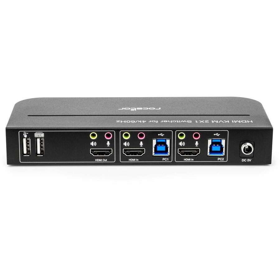 The Rocstor SolidKVM SK06 is a high-performance 2x1 HDMI KVM switch designed to streamline your workspace by connecting two computers to a single HDMI monitor, keyboard, mouse, microphone, and speaker. Capable of routing high-definition video and audio up to 4K resolution at 60Hz, this KVM switch provides exceptional display quality and sound fidelity. Its intelligent switching functionality, combined with hot-pluggable capabilities, ensures seamless transitions between connected devices.