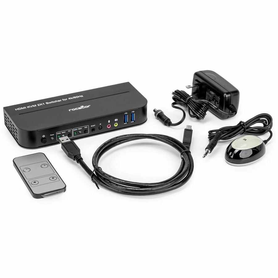 Featuring key press switching, the Rocstor SolidKVM SK06 allows for quick and efficient switching between computers, enhancing productivity. The included AC power adapter, remote control, IR extender, mounting brackets, and USB cables offer comprehensive setup options, making it an all-in-one solution for your connectivity needs. With support for HDR, HDCP 2.2, and various color formats, this KVM switch delivers vivid, true-to-life images and superior performance.