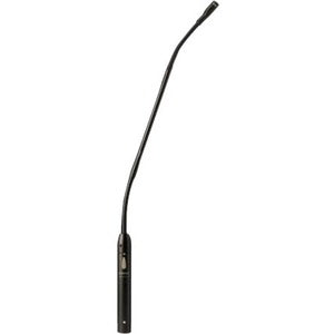 Gooseneck microphone offers interchangeable cartridges and enhanced length and flexibility for reliably clear sound reproduction. It features high sensitivity and maximum resistance to electromagnetic hum and RF interference, even over long cables.
