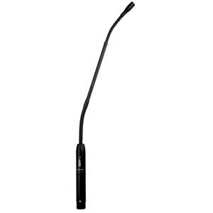 Shure Microflex MX418 microphone is miniature electret condenser gooseneck microphone with a desktop base and attached 3 m (approximate)/10 ft cable. The desktop base allows this microphone to be used in multi-purpose rooms where quick set-up is required, or where permanent installation is impractical.