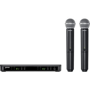 The BLX288/SM58 Wireless Dual Vocal System combines simple wireless setup, professional-grade performance, and two SM58 industry-standard vocal microphones to deliver warm and clear vocal reproduction.