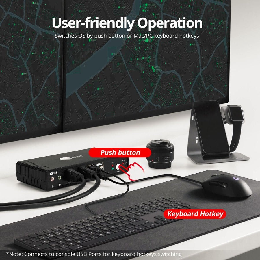 - Easy Device Switching - Convenient front panel select button or keyboard hot-key commands