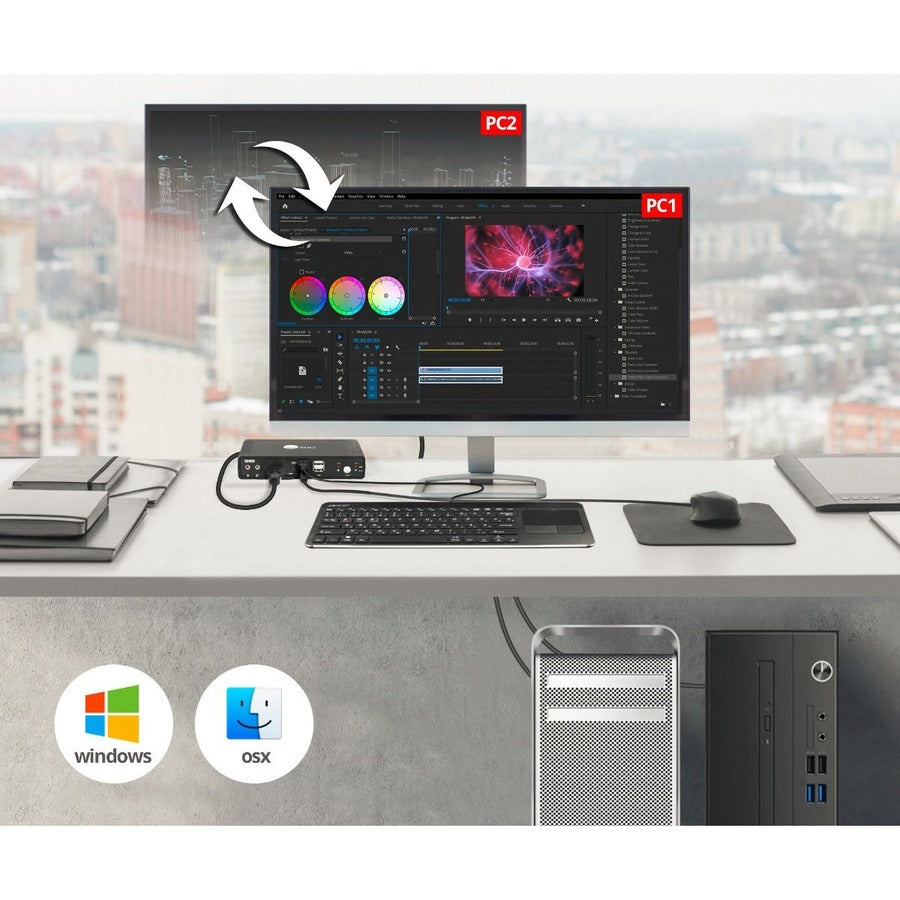 Control two 4K HDMI computers with one keyboard, mouse with microphone input, stereo audio output; 4K@60Hz resolution HDMI 2.0 and HDCP 2.2 compliant