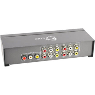 SIIG's 4x1 Composite Video & Audio Switch allows you share a display and speakers between 4 Composite video and audio sources. This switch is designed with metal housing for efficient heat dissipation to ensure durability and long life. It is a perfect solution enabling you to display content from four Composite video and audio sources to one display while maintaining signal strength and superior video quality.