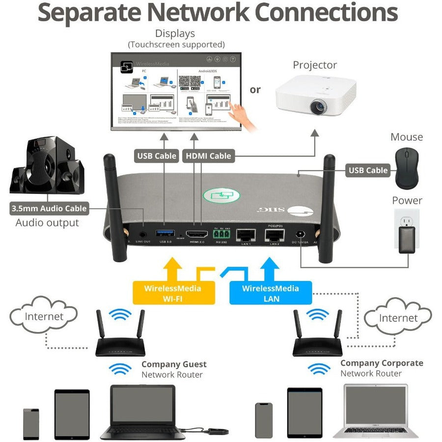 - Allows sharing laptop, tablet, smart phone wirelessly, easily join meeting room and board room presentations