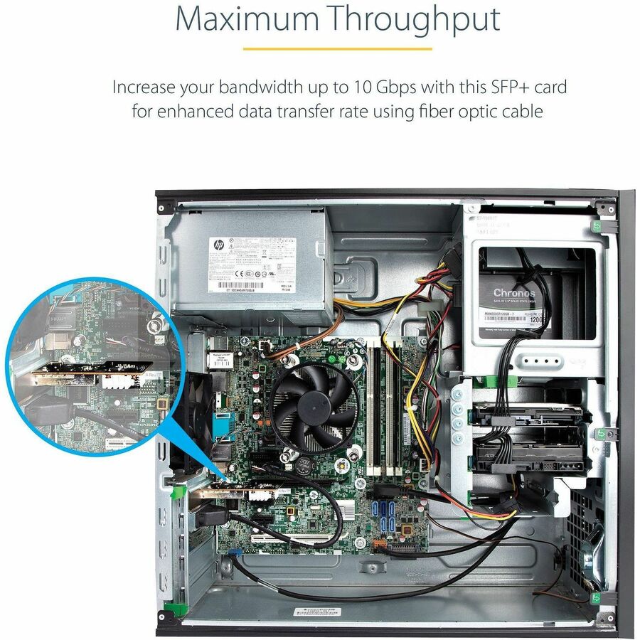 Featuring an open SFP+ slot, you have the flexibility to make changes as needed just by swapping the module in use, whether it is fiber, copper, or direct attach cables (DAC). The card complies with MSA, allowing use with modules from StarTech.com or 3rd parties that support MSA.