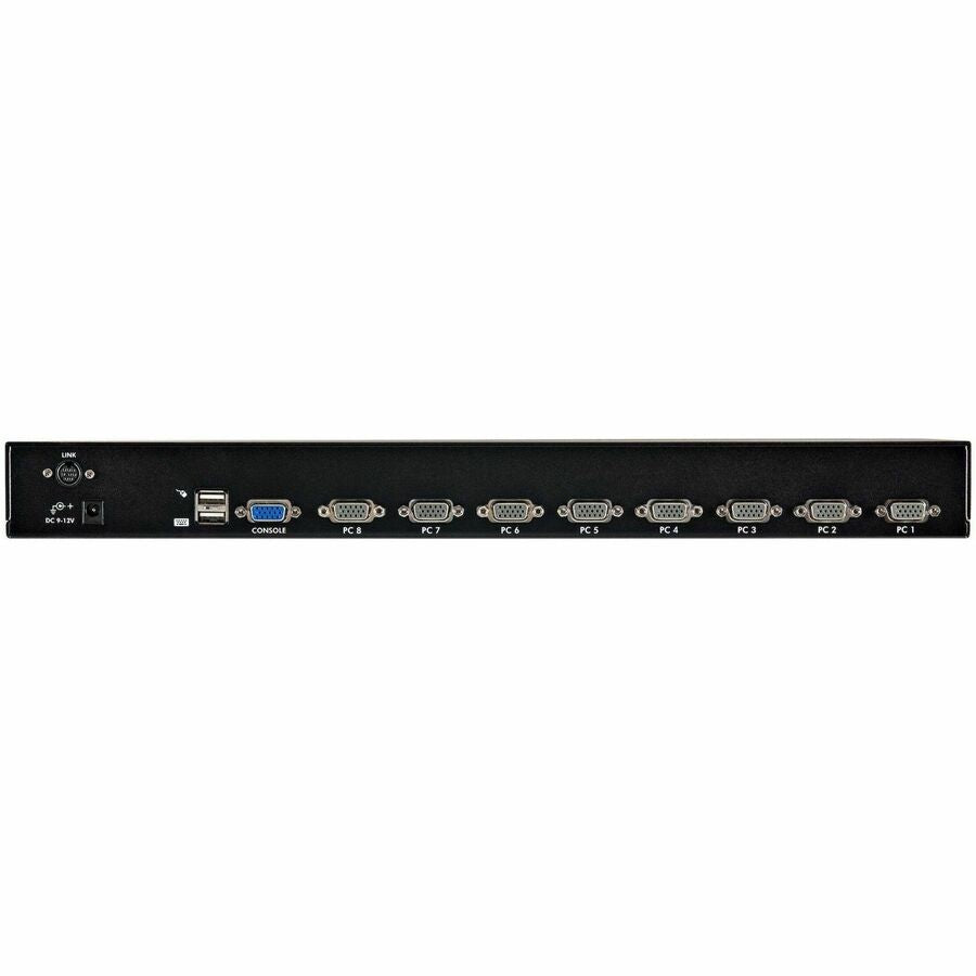 A suitable addition to server room operations, the 8-port switch can be rackmounted into 1U of cabinet space and can be cascaded with multiple KVM switches to enable control of up to 64 computers from this single switch.
