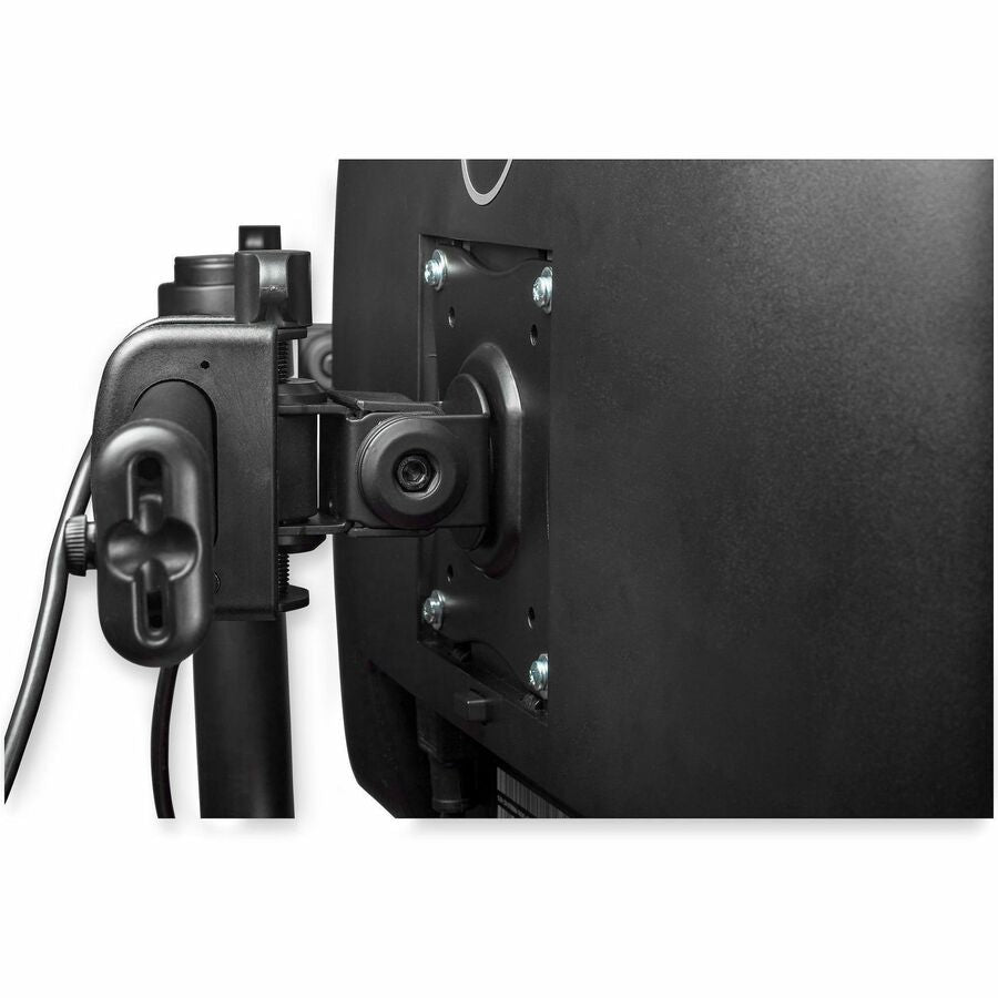 With a stable dual-arm design, the double-monitor mount lets you create more usable work space by mounting your monitors side by side on a single base. The screen mount features a flat low-profile back that lets you position your displays against a wall or cubicle wall.