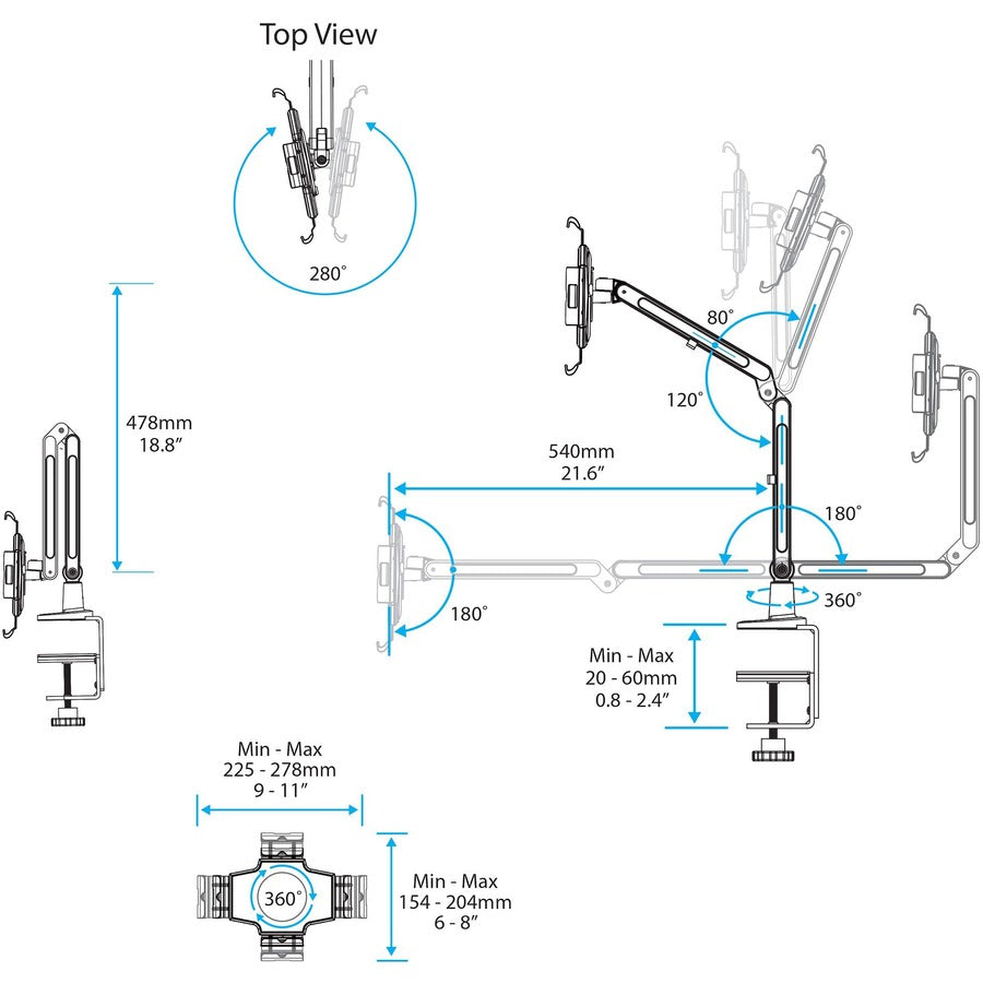 - Universal desk-mount tablet stand supports 9" to 11" tablets