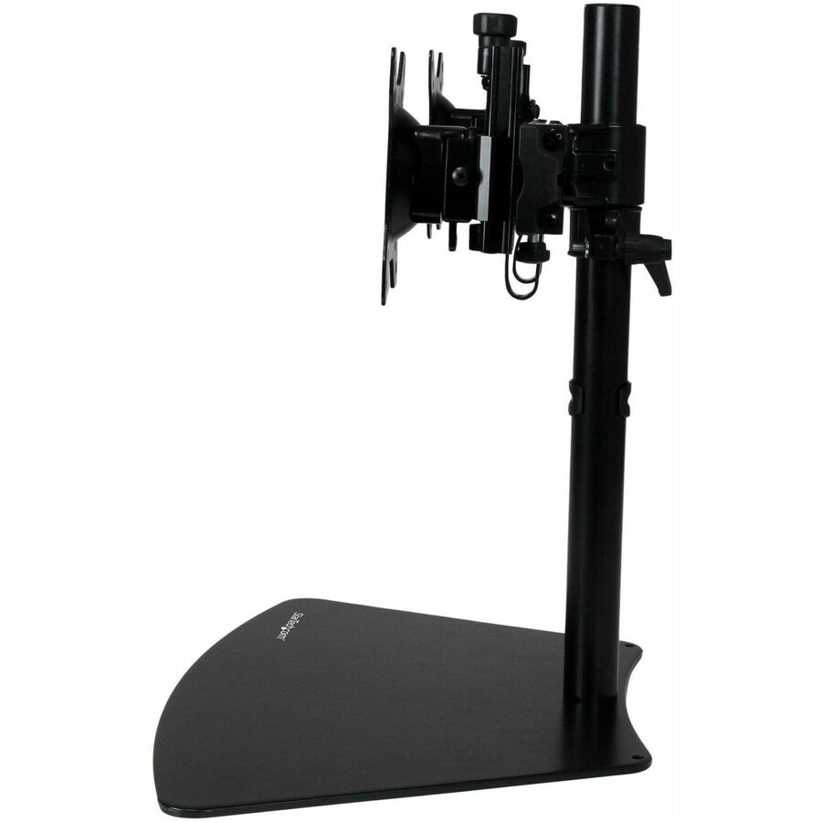 Increase your productivity and free up desk space with this dual-monitor stand. The free-standing mount lets you install two displays up to 24" , side by side, on a single base that you can place in virtually any workspace. The black finish complements your office decor.
