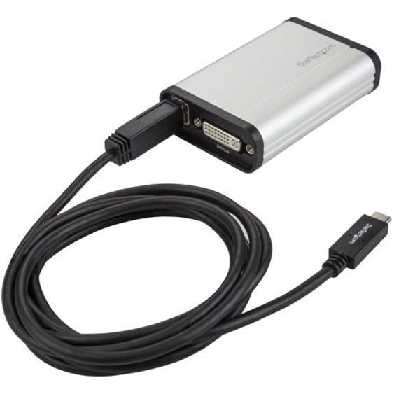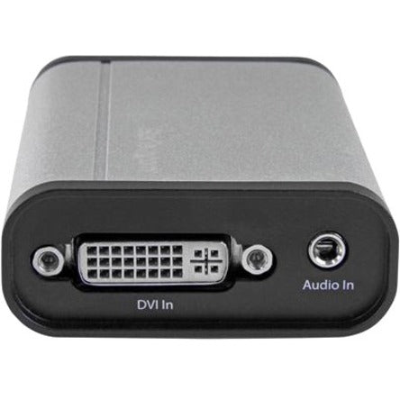 This DVI to USB-C™ video capture device works as an external USB capture card to record high-definition DVI video to your USB-C, USB-A or Thunderbolt 3 computer. With an aluminum enclosure, this device is built strong for fixed-location or on-the-go capture. It offers a separate 3.5 mm audio input for accompanying audio or voice-overs, and a DVI} pass-through port for connecting a monitor to review the video as it's captured.