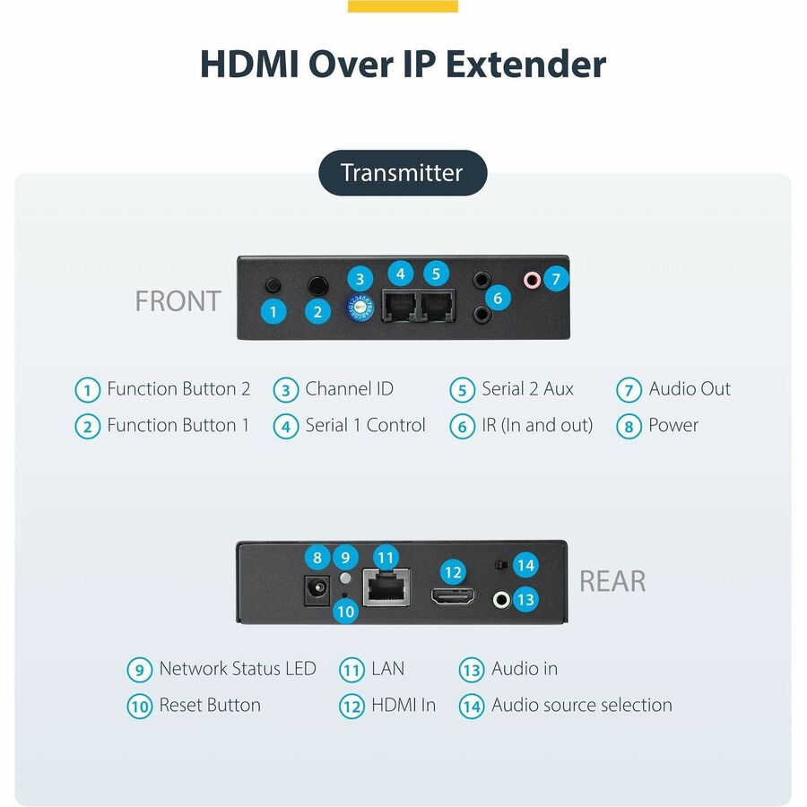 StarTech.com HDMI over IP Extender Kit with Video Wall Support - 1080p - HDMI over Cat5 / Cat6 Transmitter and Receiver Kit (ST12MHDLAN2K)