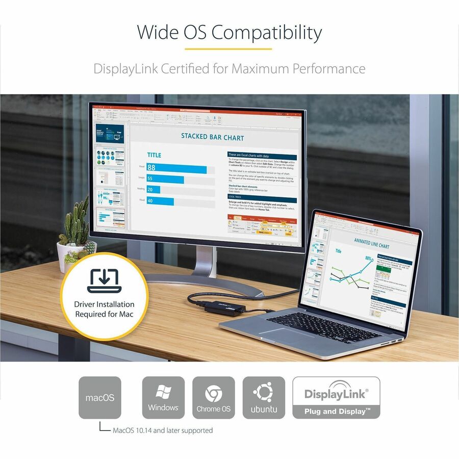 • NOTE: This adapter will not work with macOS version 10.13.4 to 10.13.6; We recommend users to update to 10.14 or later to ensure compatibility with DisplayLink; Driver required for macOS and Windows; Auto-driver install with ChromeOS