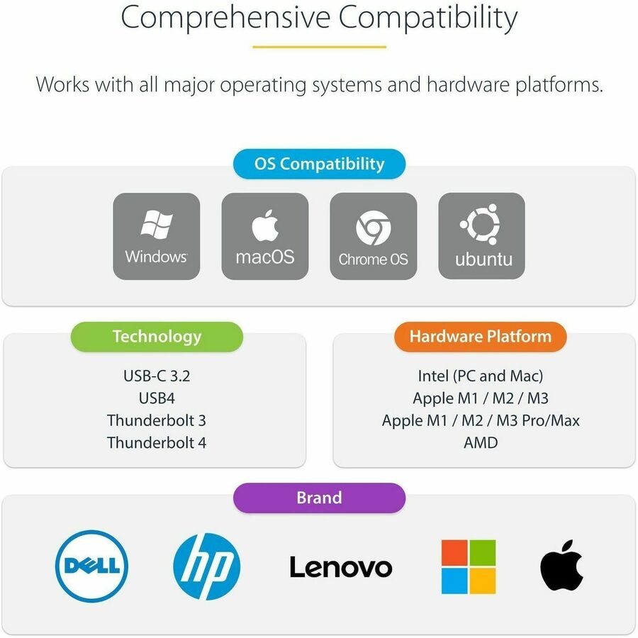 • WORKS WITH ANY LAPTOP: Simplify your deployment with a USB-IF, VESA & DisplayLink compliant docking station that offers optimal performance and universal compatibility with any laptop (Windows, macOS and Ubuntu) or Chromebook (ChromeOS)