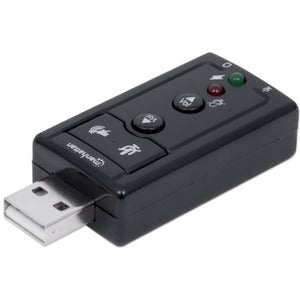 Ideal for desktop, notebook and netbook computers, the Manhattan Hi-Speed USB 3D 7.1 Sound Adapter instantly creates microphone-in and audio-out ports through any USB-A port. Easily connect headsets, microphones and speakers equipped with 3.5 mm cables that are too short to reach ports in awkward or inconvenient locations comfortably. With plug-and-play and hot-swap capabilities, it easily replaces inoperative sound cards, bypasses damaged audio ports and improves access without special drivers or software. A built-in Class-B power amplifier utilizes USB bus power, eliminating the need for external energy supplies or additional cables. Support for 3D audio and virtual 7.1 surround sound and built-in sound effects with a 10-band equalizer deliver rich, high-quality experiences with familiar USB convenience and functionality.