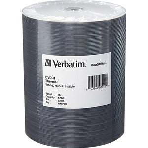 Verbatim DVD-R 4.7GB 16X DataLifePlus White Thermal Printable, Hub Printable - 100Pk Tape Wrap