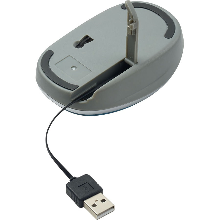 The USB-A retractable cable provides a clutter free design, for at home or on the go convenience. This mouse is backed by a 1-year Limited Lifetime Warranty.