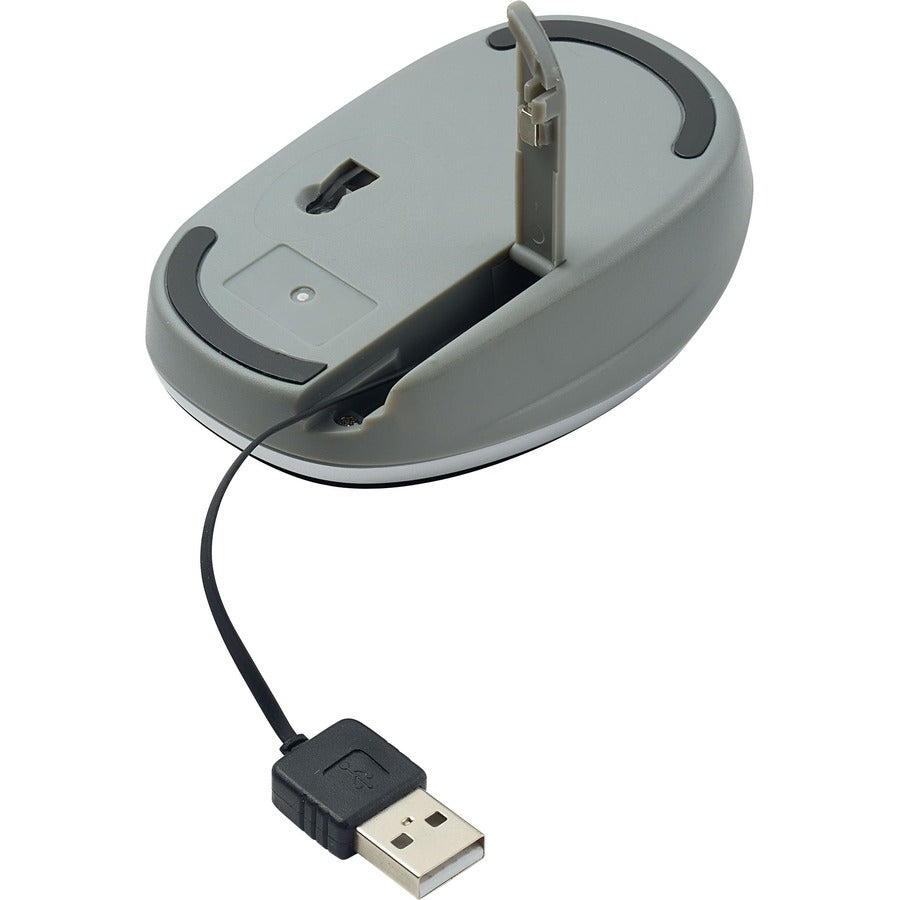 The USB-A retractable cable provides a clutter free design, for at home or on the go convenience. This mouse is backed by a 1-year Limited Lifetime Warranty.