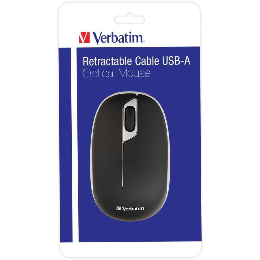 Connect to your computer seamlessly with the Verbatim Retractable Cable USB-A Optical Mouse!
