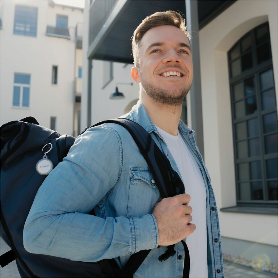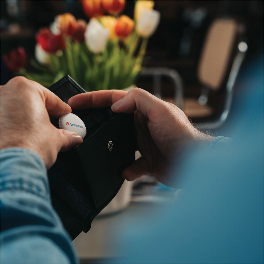 Smaller in size, Verbatim's My Finder Bluetooth Coin tracker makes finding your keys, bags, and other valuables just a little easier. Our smaller tracking device works exclusively with Apple's Find My App. Simply attach My Finder to the item you want to track and use the Apple Find My App to locate it. When you are in close range of the Apple Find My ecosystem, you can locate your lost item by selecting "Play Sound" in the app, allowing you to follow the beep to your item. You can also select your item in the app and locate it on the map - an anonymous, encrypted process to protect your privacy. With the app's Lost Mode, you can also enter your contact details in the event that your missing item is located by someone in the Apple Find My network. With smart notifications enabled on the device by default, you will receive an alert on your phone when your My Finder is out of Bluetooth range. Verbatim's My Finder is water-resistant, dustproof, and has up to 12 months battery power.