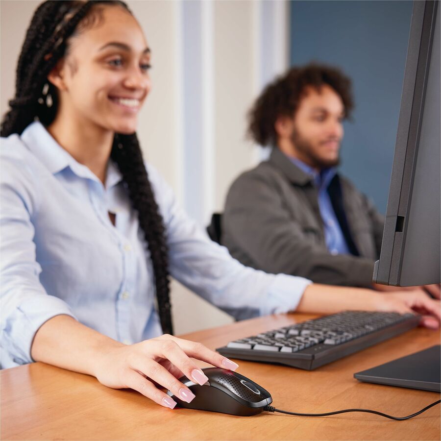With the Verbatim Silent Wired Optical Mouse USB-C™, enjoy a quiet workspace as you say goodbye to noise and hello to silence. Featuring click switches and rubber covers with Silent Technology, you can experience peaceful productivity while you work. This mouse offers an ambidextrous design, providing ease-of-use with an ergonomic grip. For smooth and precise tracking, the high performance optical sensor delivers 1000dpi. The Verbatim Silent Wired Optical Mouse USB-C™ is backed by a 1-Year Limited Warranty.