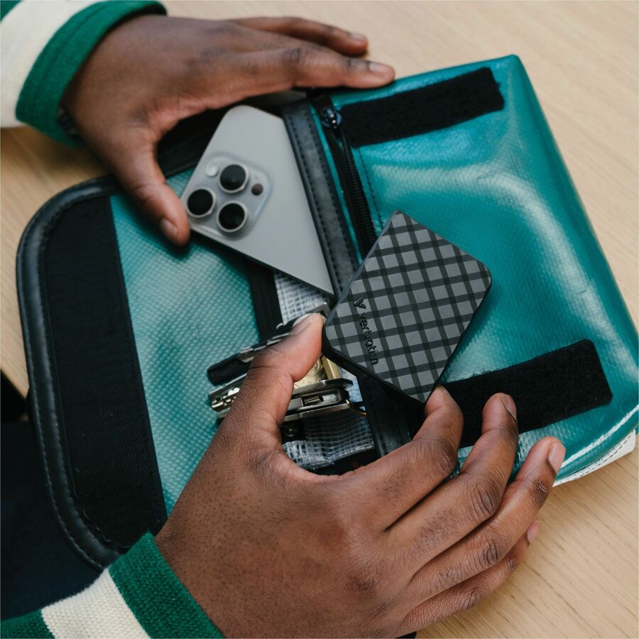 Verbatim's Store 'N' Go Mini Diamond SSD is the ideal storage companion for users on the move - blending high-performance speed and portability. Providing a fast and safe solution for storing and backing up your file, this SSD is ultra small and lightweight, in a stylish black 3D diamond design. Compatible with both PC and Mac operating systems, the SSD interface is USB 3.2 GEN 1 for super-fast data transfer speeds of up to 1000MB/s with a versatile USB-C ® connection. For optimal performance, the drive must be connected to a USB 3.2 GEN 1 host controller. The SSD handles large data transfers quickly - ideal for video editing, moving large amounts of data or maximizing gaming performance. Nero Backup software is also available with this SSD, providing the ability to backing up files on a compatible PC. Actual transfer speeds depend on file size, computer performance, and operating system. Verbatim's Store 'n' Go Mini Diamond SSDs are backed by a 2-year limited warranty.