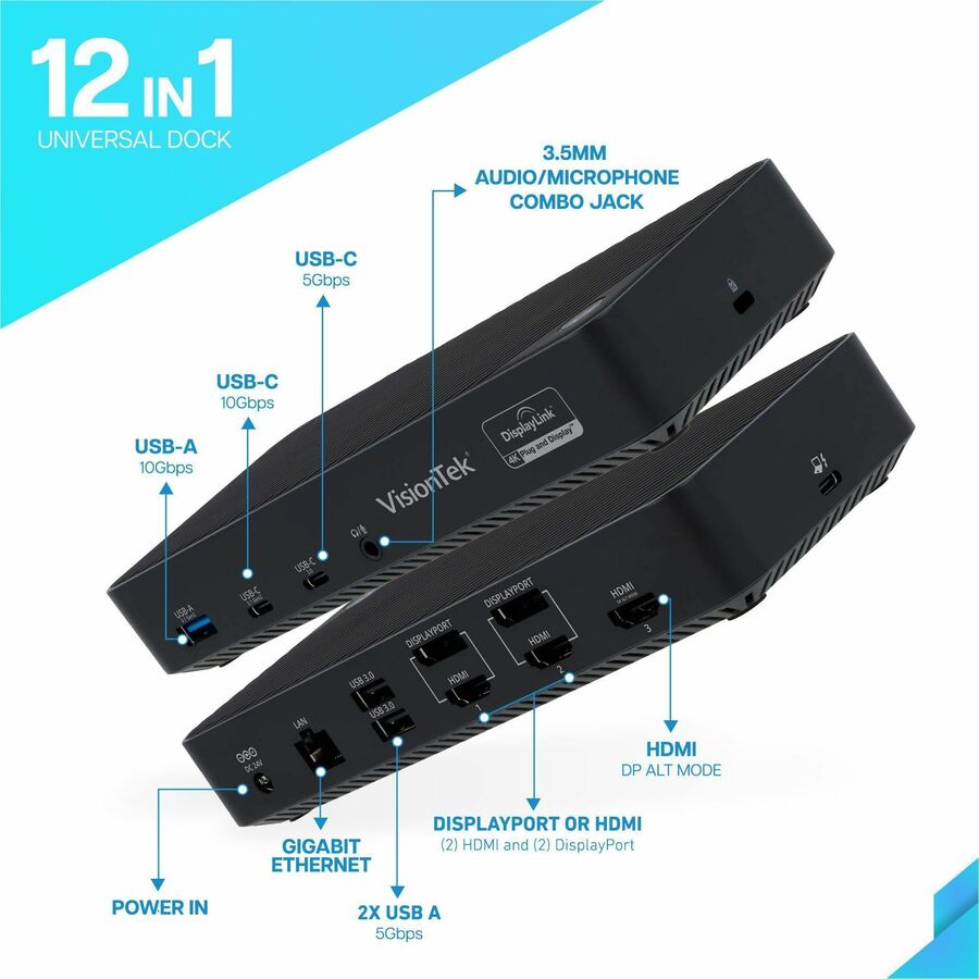 VisionTek VT7000 - Triple Display 4K USB-C Docking Station with 100W Power Delivery