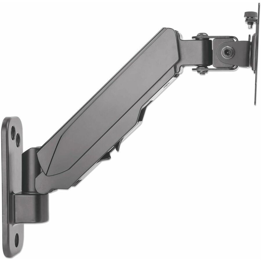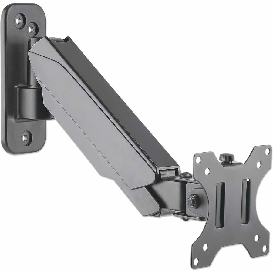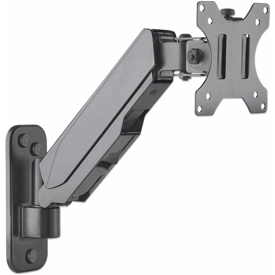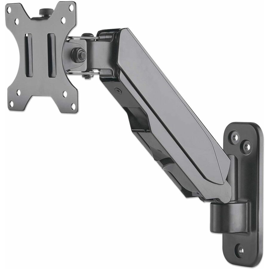 The Manhattan Universal Gas Spring Monitor Wall Mount offers a single-jointed gas-spring arm to securely hold one 17" to 32" TV or monitor. This mount's gas spring promotes easy movement of the monitor or TV to a more comfortable viewing angle with the lightest touch. Designed to be installed on the wall to give back much-needed desktop real estate, the Manhattan Universal Gas Spring Monitor Wall Mount provides more flexibility, reach, and overall enjoyment of whatever task is at hand.